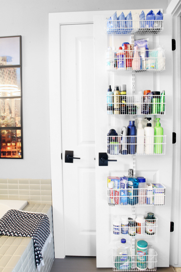 - Bathrooms are notoriously tight on storage, but the back of the door is prime real estate. Try an over-the-door organiser with multiple clear pockets to hold toiletries, hair tools, cosmetics, or cleaning supplies. Prefer a minimalist look? Opt for a sleek metal rack that fits towels, robes, and even spare toilet rolls.